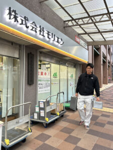 先日、先輩からお客様を引き継ぎ営業としてデビューしました! 見積作成や伝票起票、問い合わせ対応等大変ですが先輩方に質問しながら頑張っています。 「明るく元気いっぱい頑張ります!」 7:00 出社・開店準備 お客様の来店対応や電話対応。塗装職人さんが朝早くに来店されるため出勤時間が早くなっています。7:30~配達・訪問 昨日御注文いただいた塗料や道具をもって現場や事務所へ配達。職人さんに顔を覚えてもらうために元気よく挨拶! 現場でお客様から御注文やお困りごとのヒアリングを行い、お客様との関係性を作っていきます。 「仕事の話だけではなく、プライベートの話もしながら仲を深めていきます!」 10:30~調色 モリエンでは店舗で調色を行っています。 スピード対応でご希望の色を作成し、お客様やお施主様に喜んでいただいております。