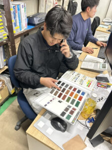 先日、先輩からお客様を引き継ぎ営業としてデビューしました! 見積作成や伝票起票、問い合わせ対応等大変ですが先輩方に質問しながら頑張っています。 「明るく元気いっぱい頑張ります!」 7:00 出社・開店準備 お客様の来店対応や電話対応。塗装職人さんが朝早くに来店されるため出勤時間が早くなっています。7:30~配達・訪問 昨日御注文いただいた塗料や道具をもって現場や事務所へ配達。職人さんに顔を覚えてもらうために元気よく挨拶! 現場でお客様から御注文やお困りごとのヒアリングを行い、お客様との関係性を作っていきます。 「仕事の話だけではなく、プライベートの話もしながら仲を深めていきます!」 10:30~調色 モリエンでは店舗で調色を行っています。 スピード対応でご希望の色を作成し、お客様やお施主様に喜んでいただいております。